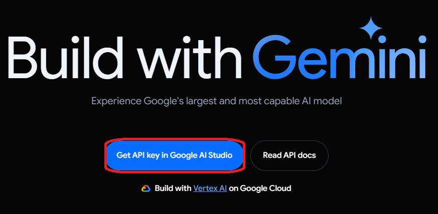 Google이 허가해준 API Key가 있어야만 Python 코드에서 Gemini를 사용 할 수 있습니다. 사진을 눌러 페이지를 이동하면 보이는 "GetAPI Key in Google AI Studio"를 누르시면서 Key 생성을 시작할 수 있습니다.